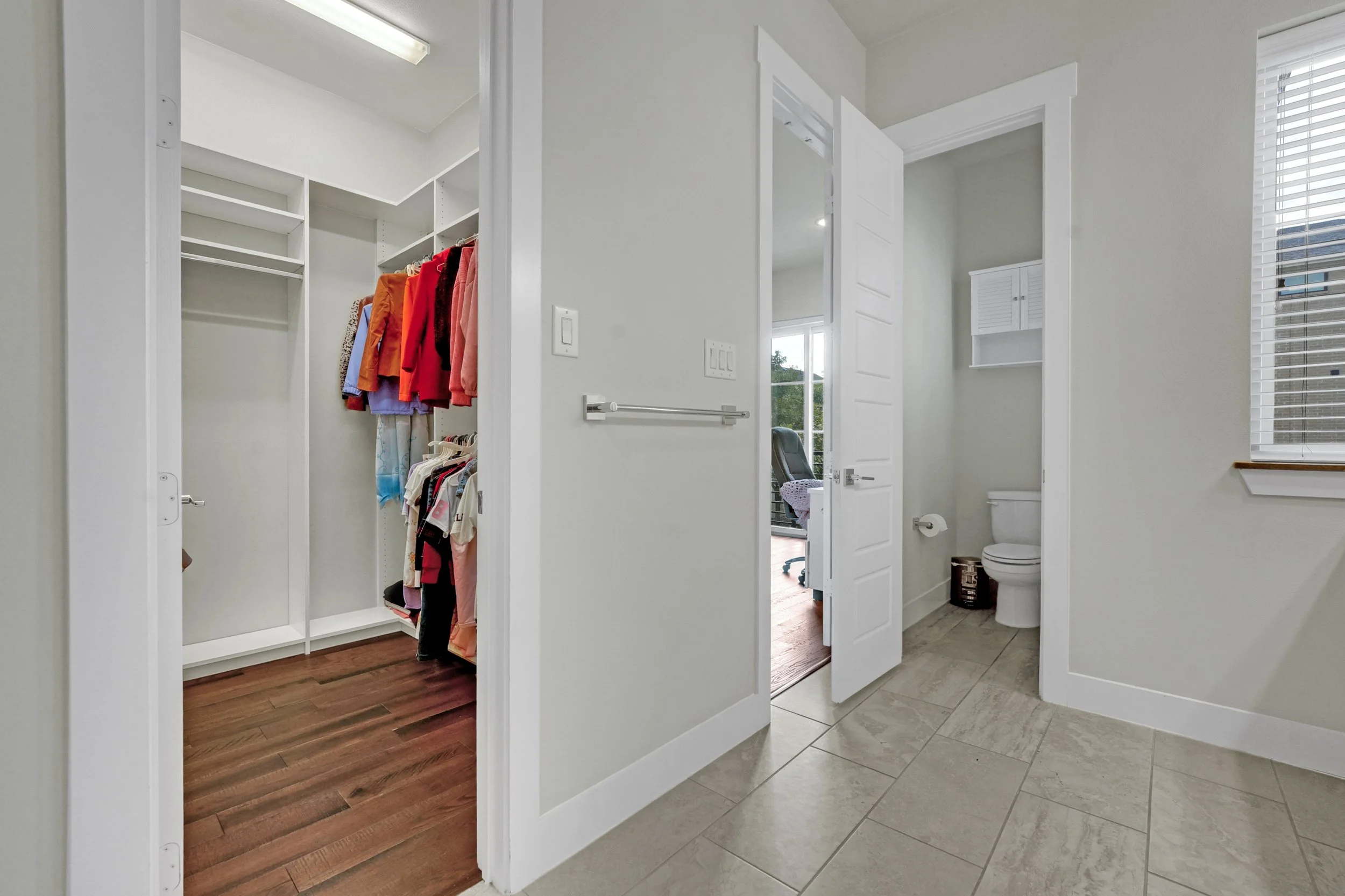 Primary suite with ensuite bath, dual sinks, and walk-in closet